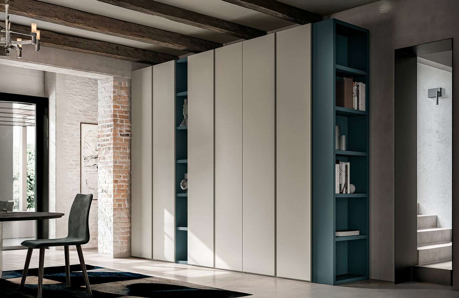 Armadio battente dalle linee pulite con maniglie a gola.