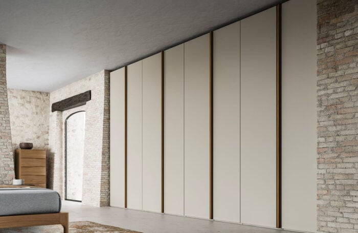 Armadio dalle linee essenziali e pulite, ante battenti e maniglia a tutta altezza per facilitare apertura e chiusura.